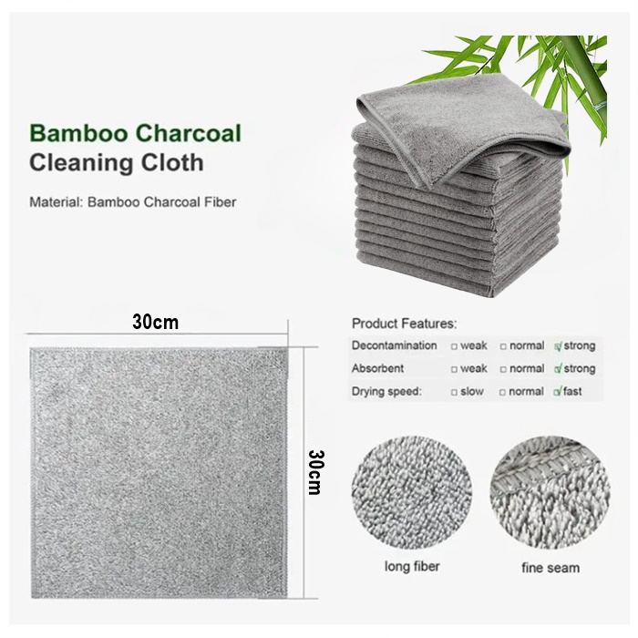 5 atau 10pcs Kain Lap Pembersih Arang Buluh Mikrofiber (bergantung pada pilihan)