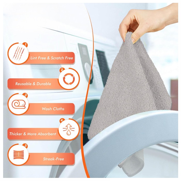 采用优质超细纤维制成,轻松去除污垢和油脂,不掉毛,不留绒毛。