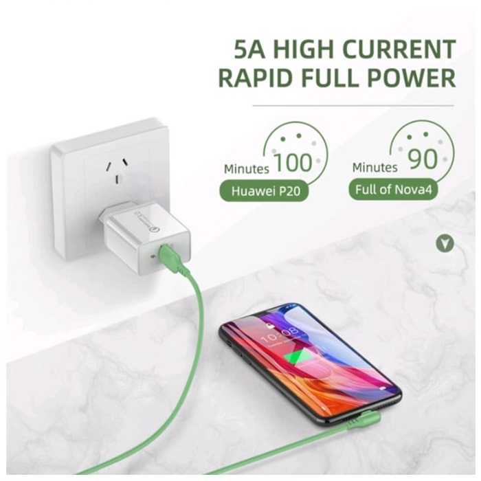 Kabel data siku getah lembut cecair cas pantas 5A, wayar anjal tinggi, tiada tanda pada lenturan