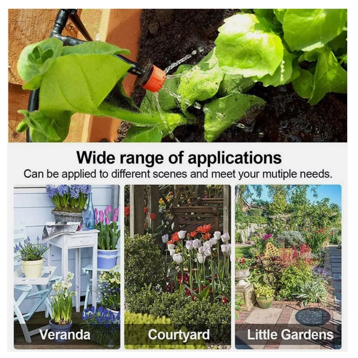 Kit pengairan serba boleh ini sesuai untuk menyiram bunga, tumbuhan dan banyak lagi secara automatik. Menjimatkan masa dan air dengan sistem penyiraman automatik yang cekap yang mengurangkan penggunaan air sehingga 70%.