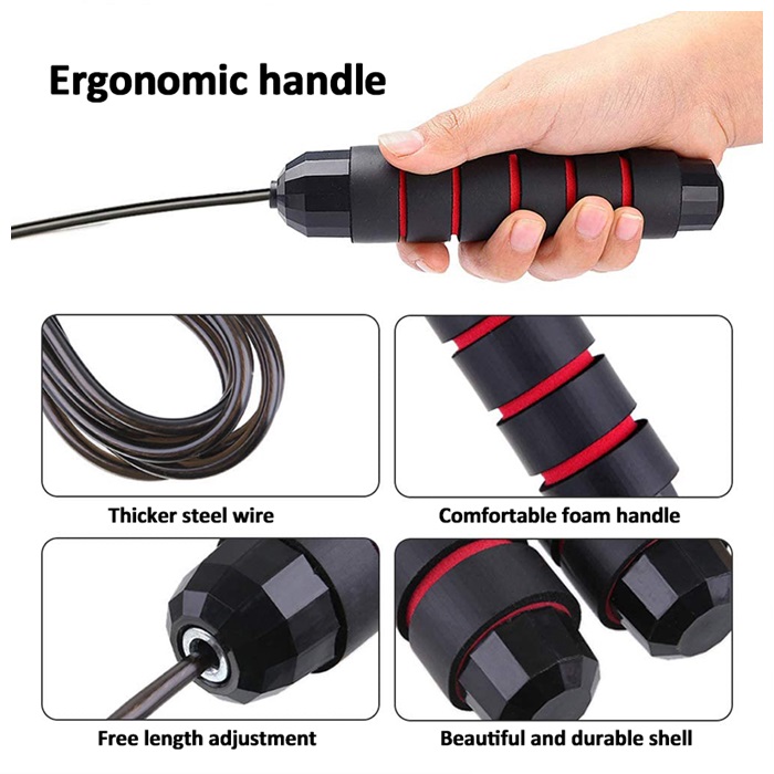 - The gym skipping rope constructed with light weight ergonomic handles coated with 6 inch soft EVA memory foam grips for extra comfortable and strong grip, so that you can You can take full advantage for doing exercise.