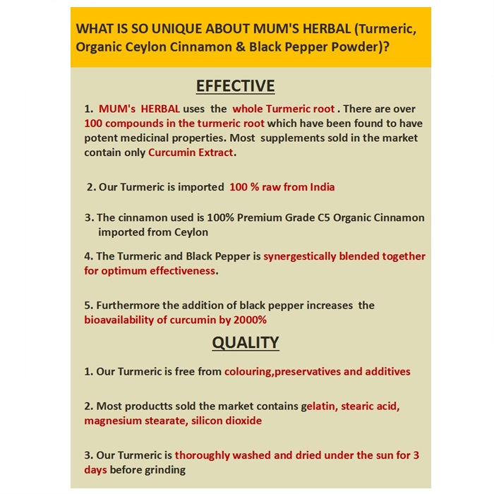 Ingredients - Turmeric, Ceylon Cinnamon, Black Pepper (Ingredients includes BLACK PEPPER which enhances the absorption of curcumin by 2000%)