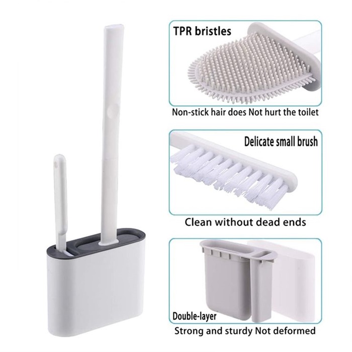 ?Mudah Dibersihkan?Berus pembersih tandas yang diperbuat daripada bahan TPR dan pp premium. Kalis air, bahan yang baik terhadap air keras dan tidak akan meninggalkan kesan air atau calar pada bahan seramik. Berus tandas kelabu mempunyai bulu yang fleksibel, tidak mudah haus atau lusuh, memanjangkan hayat perkhidmatan dengan berkesan, dan tidak mudah kertas tandas, rambut atau sisa degil melekat pada bulu, yang menjadikan pembersihan berus tandas dinding mudah.