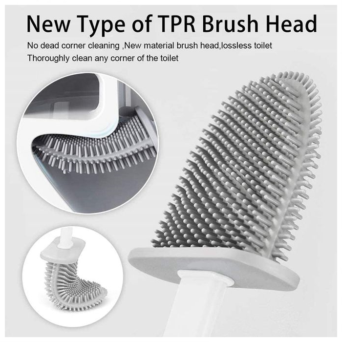 【Easy to Clean】The toilet cleaning brush made of premium TPR and pp material. Waterproof, good material against hard water and won't leave water stains or scratches on ceramic materials. The grey toilet brush has flexible bristles, not easy to wear or tear, effectively extends the service life, and not easy for toilet paper, hair or stubborn residue to stick to the bristles, which makes the cleaning of wall toilet brush easy.