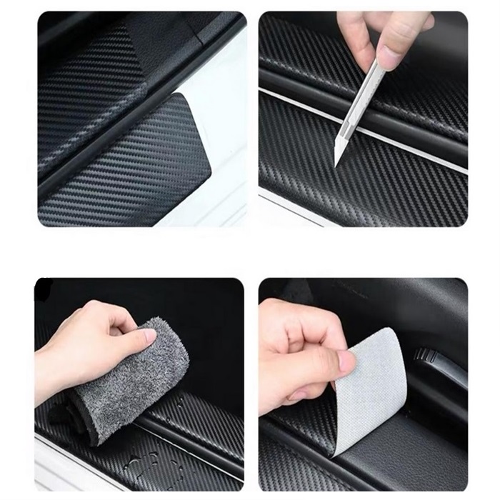 Menyerap kesan dan mengelakkan calar. Boleh menutup calar sedia ada, berikan kereta anda gaya yang berbeza. Boleh melindungi pinggir Plat Sill Pintu luar dengan berkesan, untuk mengelakkan pemasangan calar geseran adalah sangat mudah. ia mempunyai gam di bahagian belakang. apabila anda memasang pelekat