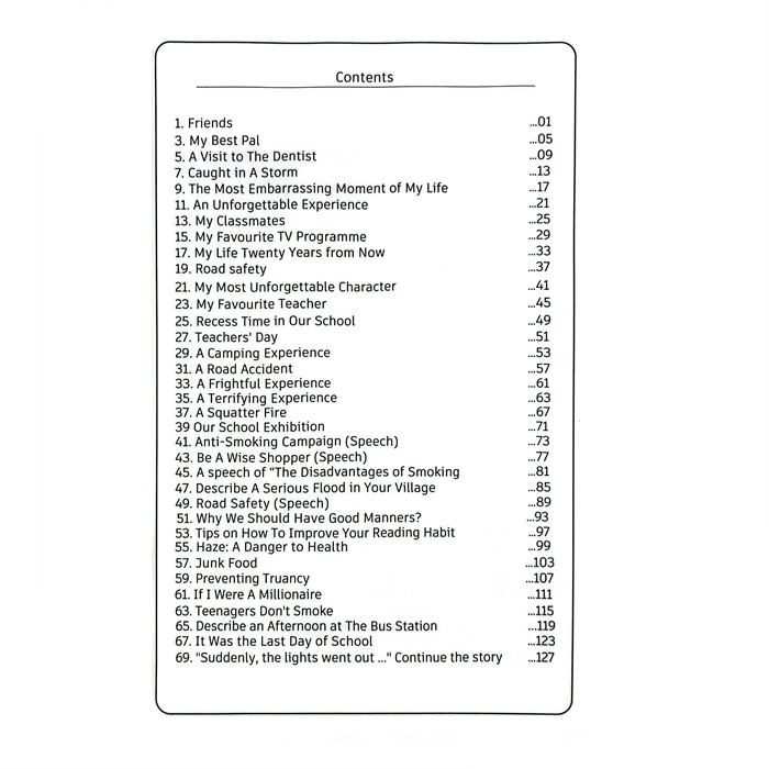 ? Contains various types of essays - narrative, descriptive, factual and discussion