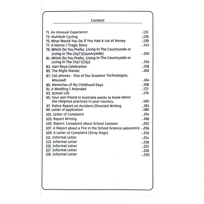 The FOKUS MASTERI: 120 Bilingual Essay Collection SPM book is specially designed to help Form 4 and 5 students improve their essay writing skills in Malay and English. Containing 120 clear, concise and easy-to-understand essay examples, this book is the best reference for SPM exam preparation.