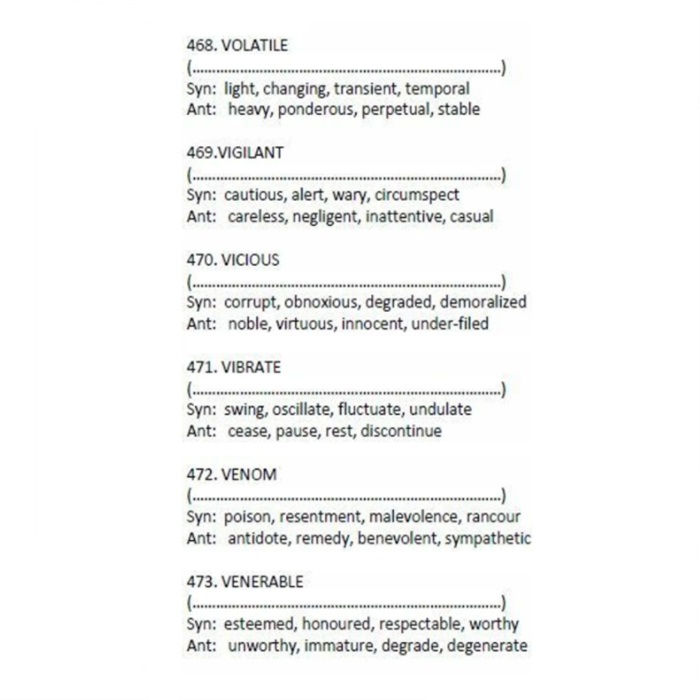 - simple and yet detailed information about everything a reader needs to know about Synonyms and Antonyms