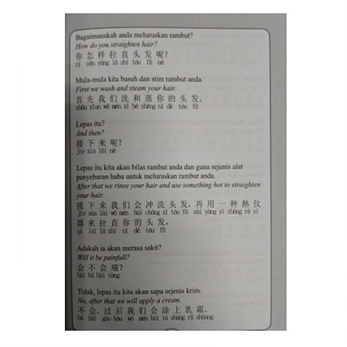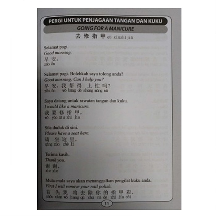 Due to its widespread use, we have published this book 'Perbualan Asas Mandarin Trilingual' to be used as a reference for all groups who want to learn Mandarin. The use of simple words, phrases and sentences can help readers practice the use of Mandarin in their daily conversations.