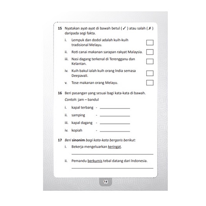 PRODUCT DESCRIPTION: Buku Latihan Bahasa Melayu (Pengetahuan Tatabahasa, Pemahaman & Kosa Kata) Untuk Tahap 2 Sekolah Rendah (Tahun 4,5 & 6)