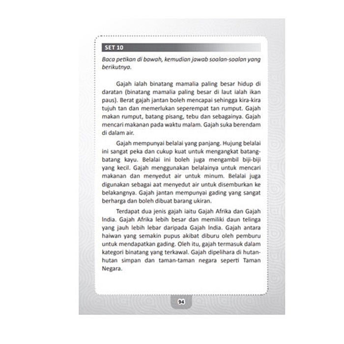 Buku ini dicipta untuk melengkapkan keperluan pelajar untuk mendapat sumber latihan yang cukup dalam persiapaan mereka menduduki kertas ujian Bahasa Melayu Tahap 2 sekolah rendah. Pengunaan buku ini boleh membantu pelajar membina landasan bahasa yang kukuh sejak umur yang muda. Ini adalah penting untuk masa depan pelajar yang ingin berjaya dalam hidup tidak kira apa jua bidang dan pekerjaan yang mereka akan pilih nanti. Pengetahuan Tatabahasa adalah asas untuk subjek tersebut. Pelajar akan mempelajari tentang sistem dan struktur susunan perkataan dalam ayat serta cara yang betul untuk bercakap dan menulis dalam Bahasa Melayu. Selain itu, bahan bacaan berkualiti yang disediakan bersama soalan latihan adalah bertujuan untuk membantu pelajar memahami pelbagai jenis teks dengan lebih senang. Akhirnya latihan kosa kata akan membantu pelajar untuk menggunakan bahasa yang berwarna-warni dalam karangan dan perbualan harian.