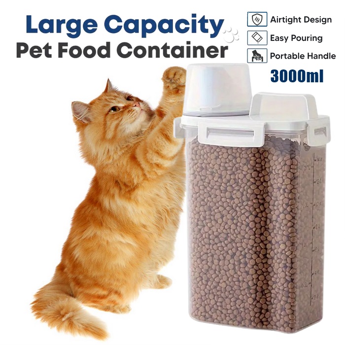 3.0L Bekas Penyimpanan Makanan Kering | Dispenser Beras, Bijirin & Makanan Haiwan Kesayangan