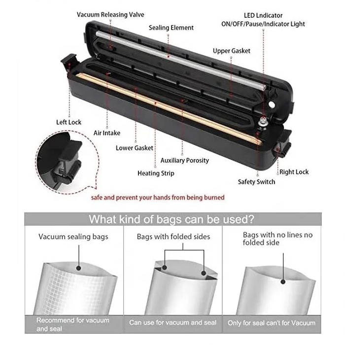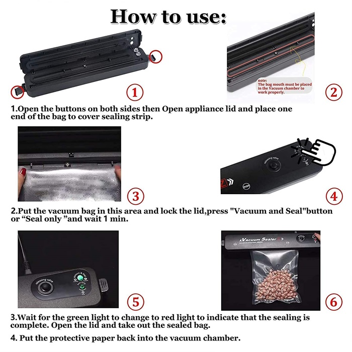 4: Do not seal food that will appear flowing liquid, otherwise it may affect the sealing effect