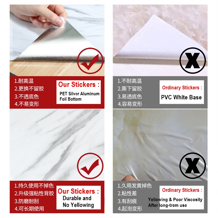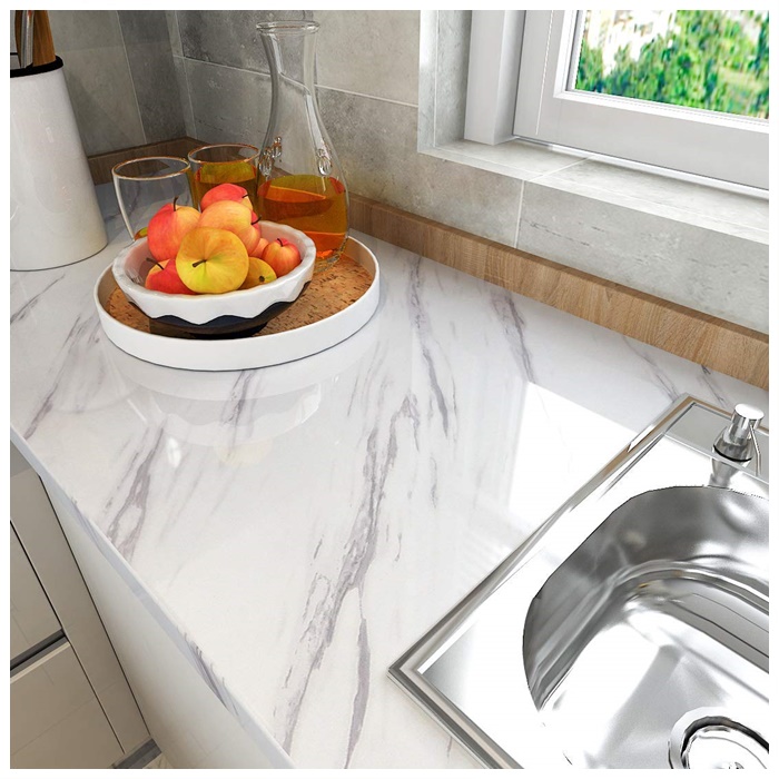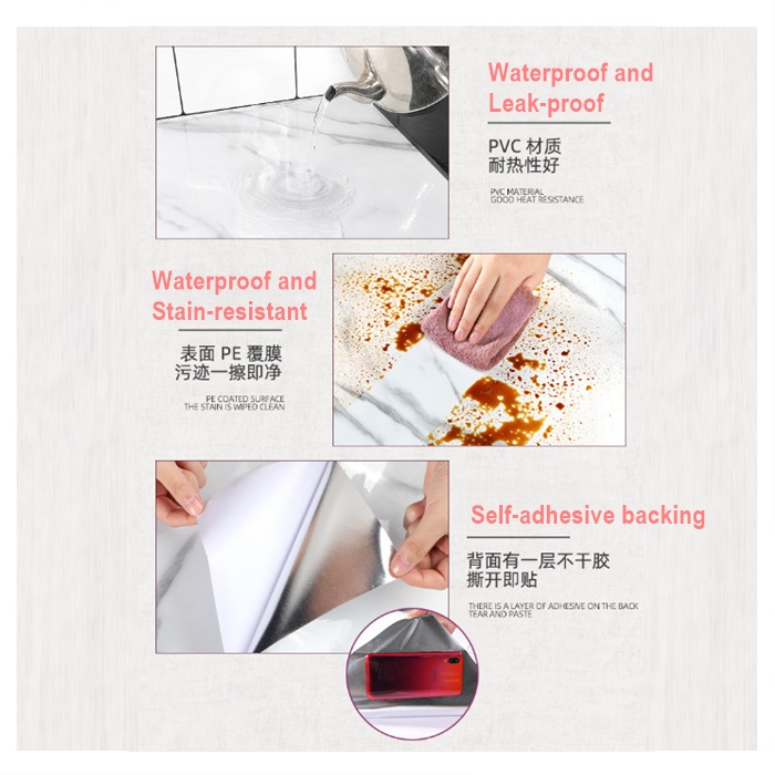 Tambahkan sentuhan keanggunan dan kemewahan pada dapur, kabinet atau permukaan dinding anda dengan kertas dinding pelekat diri reka bentuk marmar berkualiti tinggi ini. Dibuat dengan bahan aluminium PET tahan lasak, pelekat dinding ini kalis air, kalis minyak dan tahan lembapan, cendawan dan anai-anai—menjadikannya sesuai untuk dapur, bilik mandi dan kawasan penggunaan tinggi.