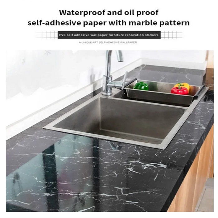 Add a touch of elegance and luxury to your kitchen, cabinet, or wall surfaces with this high-quality marble design self-adhesive wallpaper. Made with durable PET aluminum material, this wall sticker is waterproof, oil-proof, and resistant to moisture, mildew, and termites—making it ideal for kitchens, bathrooms, and high-use areas.