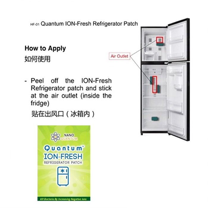 - Peel off the ION-Fresh refrigerator patch& stick at the air outlet (inside the fridge)