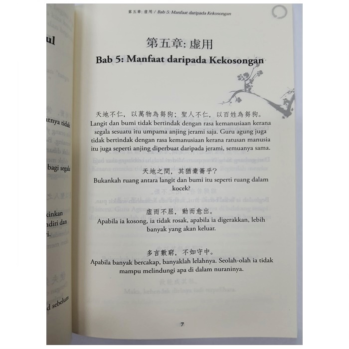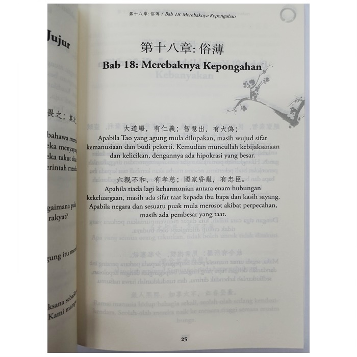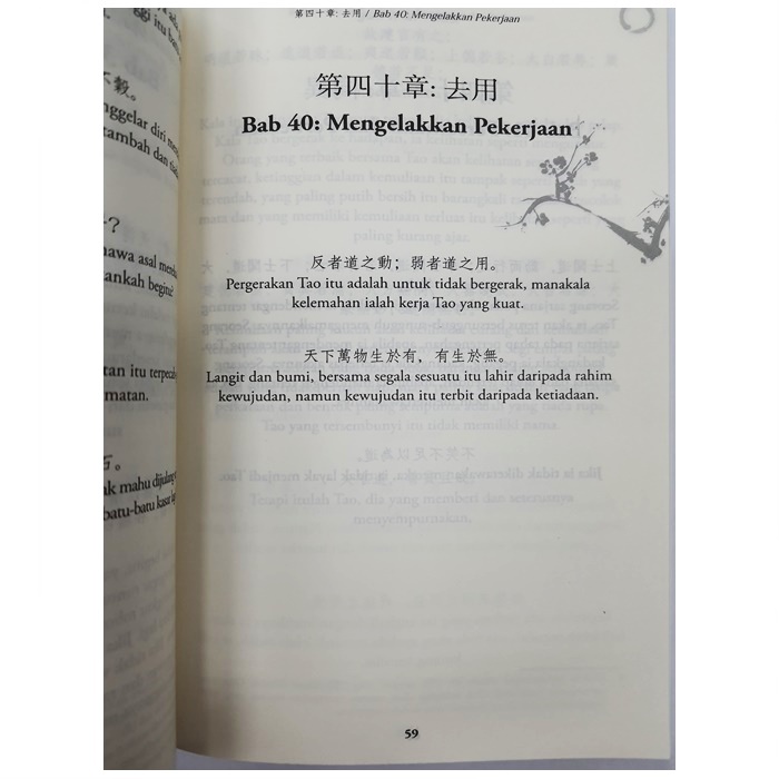 Buku yang berada di tangan anda ini merupakan penerokaan falsafah seorang mahaguru bernama Lao Tzu terhadap persoalan-persoalan kehidupan dan kewujudan yang paling mendasar. Ia mencadangkan konsep "Tao," satu daya yang wujud tanpa rupa, tanpa wajah, tanpa bentuk, tanpa rasa, namun itulah asal-usul bagi segala sesuatu, la ditulis dengan gaya pendek pendek yang tidak meleret, dan gaya sebegini tentunya mengundang ribuan komentar dan kritikan selepas itu.