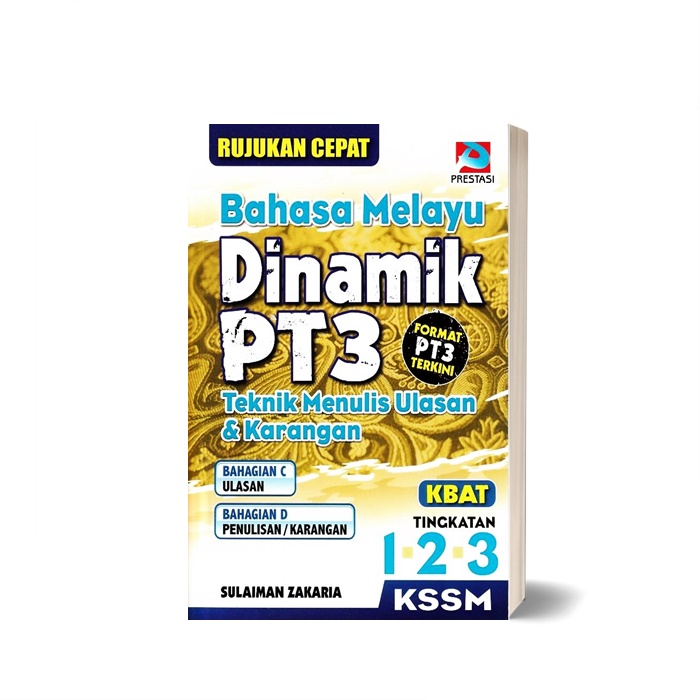 Buku Bahasa Malaysia Dinamik PT3 - Teknik Menulis Ulasan & Karangan merupakan sambungan Buku Bahasa Malaysia Dinamik PT3 - Pengetahuan & Kemahiran Bahasa sebagai memenuhi bahan-bahan peperiksaan PT3. Bahasa Malaysia Dinamik PT3 - Pengetahuan & Kemahiran Bahasa telah membicarakan Bahagian A (Sistem Bahasa) yang merangkumi: Aspek Tatabahasa, Ejaan, Sintaksis, dan Peribahasa. Buku ini pula memuatkan Bahagian C (Ulasan) dan Bahagian D (Penulisan Karangan). Latihan membuat ulasan dan contoh-contoh karangan dalam buku Dinamik PT3 ini dapat digunakan untuk membantu para pelajar meningkatkan lagi taraf penguasaan Bahasa Melayu mereka dalam bentuk penulisan.
