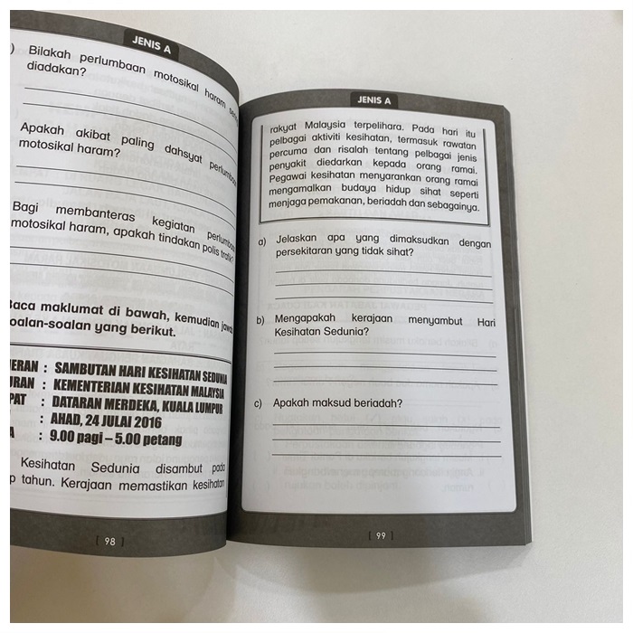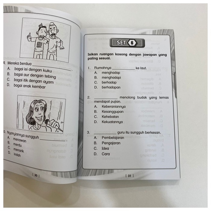 buku panduan sistem bahasa dan pemahaman ini disusun sesuai dengan kehendak UPSR bahasa Malaysia terkini. soalan - soalan kefahaman berdasarkan KBAT (kemahiran berfikir aras tinggi) oleh itu soalan -soalan agak mencabar, memerlukan penelitian dan penilaian murid.