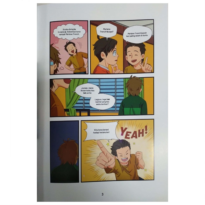 Aizad and Kimi tried to persuade Zahid to join the tour, but Zahid firmly refused. Aizad invites Zahid to simulate an adventure on the seabed using a virtual reality gadget (Virtual Reality)