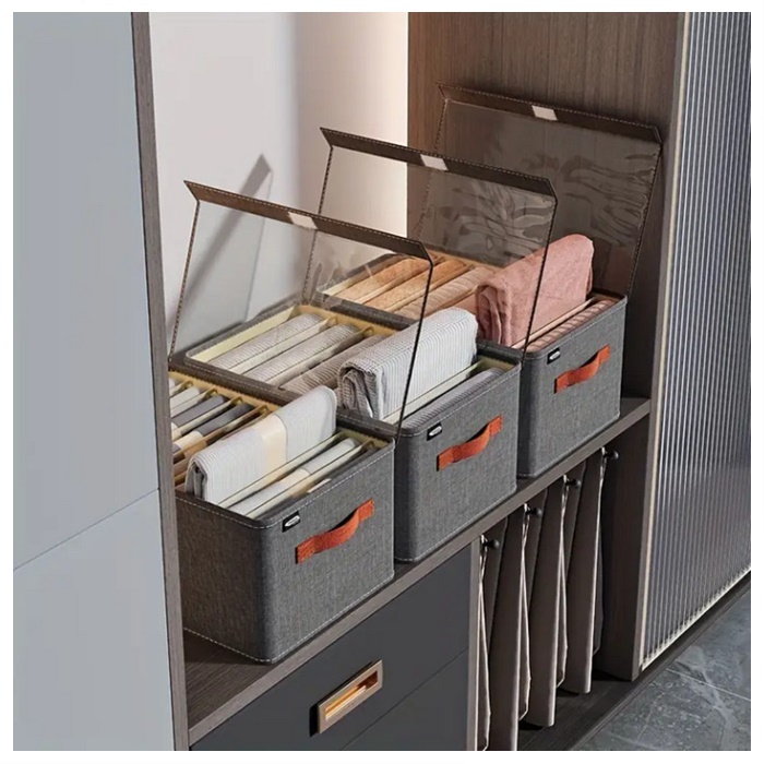 将牛仔裤和衣服整齐分开并方便拿取。 这款收纳盒是任何衣柜的多功能补充。