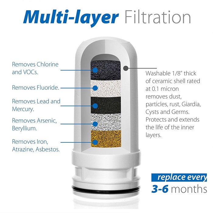 Kartrij penuras disinterfer dari tanah liat semulajadi pada suhu melebihi 1200.C. Ia menyediakan penapisan mekanikal mutlak kepada 0.1 mikron dengan kadar penolakan 99.9% kepada bakteria dan sista. Kartrij penuras boleh tumbuh semula selepas membasuh dengan penyelesaian Peroksida Hidrat atau digunakan semula selepas menggosok lapisan luar.Apabila bercampur dengan oksida mineral seperti Silika Oksida (SiO2), Aluminium Oxide (AI2O2), kartrij penapis boleh memancarkan sinar Farinfrared yang mempunyai kelebihan berikut.