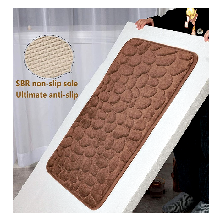 -- Bahan: Tikar mandi diperbuat daripada bahan berkualiti tinggi, permukaan flanel, busa memori, poliester dan sokongan lateks, item tidak licin, sangat menyerap dan lembut.