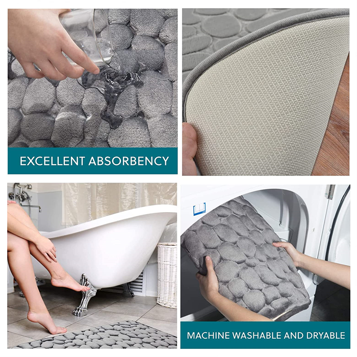 -- Sangat menyerap: Tikar mandi menyerap air dan kelembapan tambahan di dalam bilik mandi anda, memastikan mana-mana lantai kering.