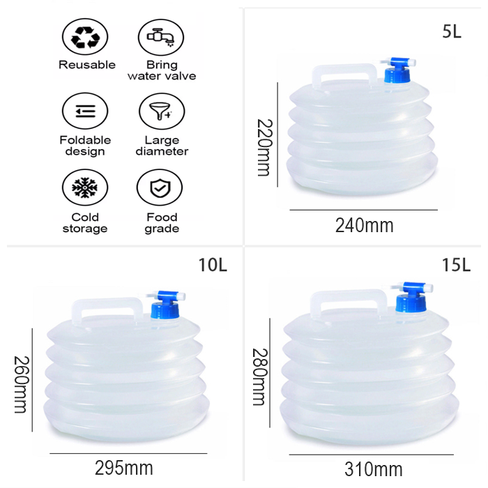 PE 折叠水袋 | 户外便携水壶 | 可折叠食品级水桶 (5L / 10L / 15L)