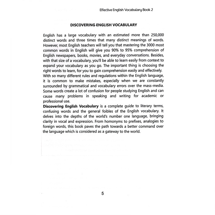 Koleksi Bijak: Effective English Vocabulary Book 2 merupakan kesinambungan hebat bagi pelajar sekolah rendah Tahap 2 (Tahun 4, 5 dan 6) yang ingin memperluaskan kosa kata Bahasa Inggeris mereka dengan cara yang menarik dan berkesan. Dilengkapi dengan kandungan dwibahasa, buku ini membantu pelajar memahami konsep bahasa dengan lebih mendalam serta meningkatkan kemahiran komunikasi dan penulisan mereka.