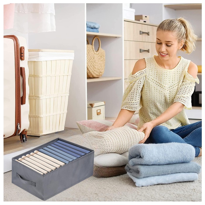 Ideal for neatly organizing jeans, sweaters, shirts, and other clothing items, this box is a versatile addition to any wardrobe.