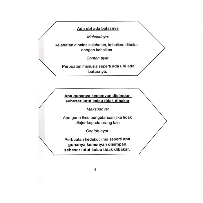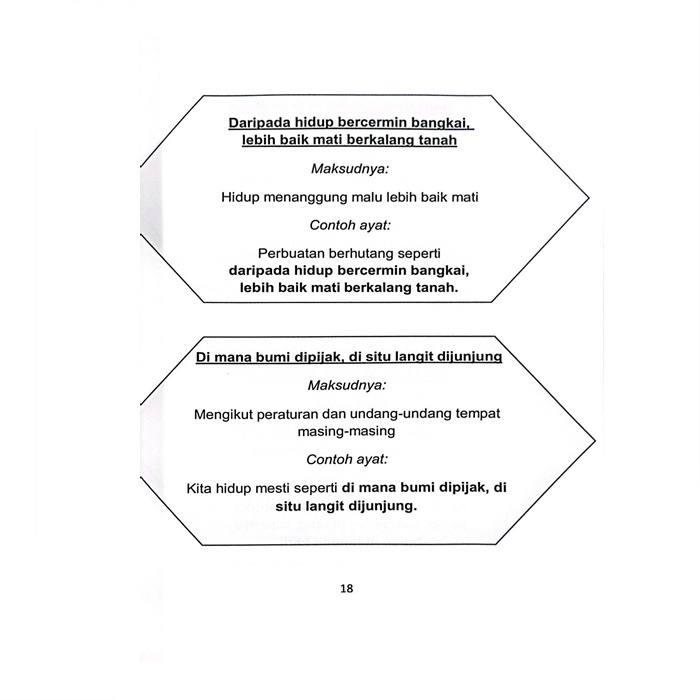 * Ilustrasi menarik yang membantu pelajar memahami konteks penggunaan peribahasa.