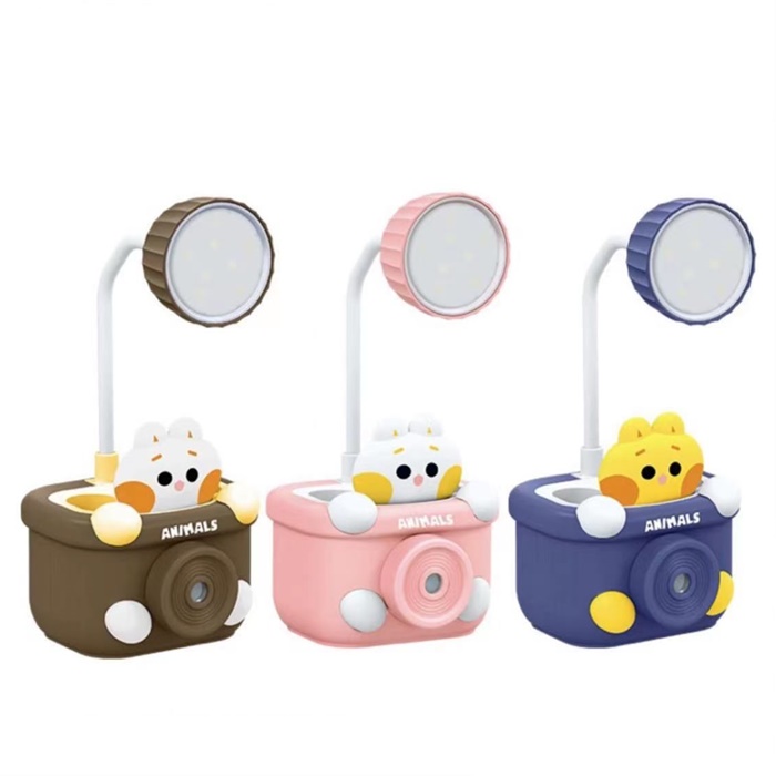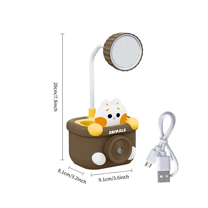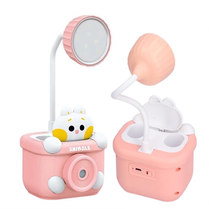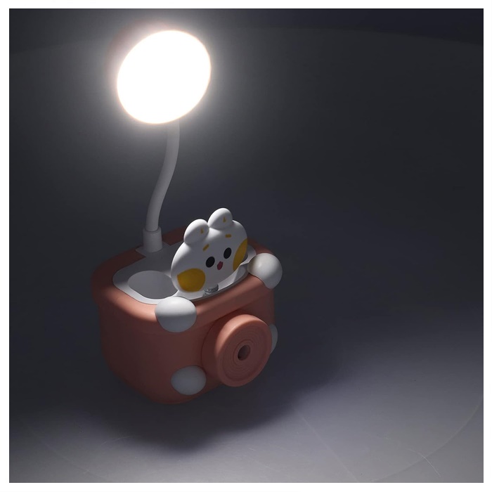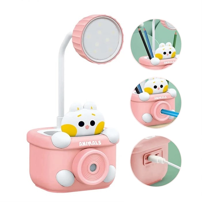 Lampu Meja LED Mini 3 dalam 1 Comel dengan Pengasah Pensel dan Pemegang Pen untuk Kanak-kanak + kabel pengecasan USB