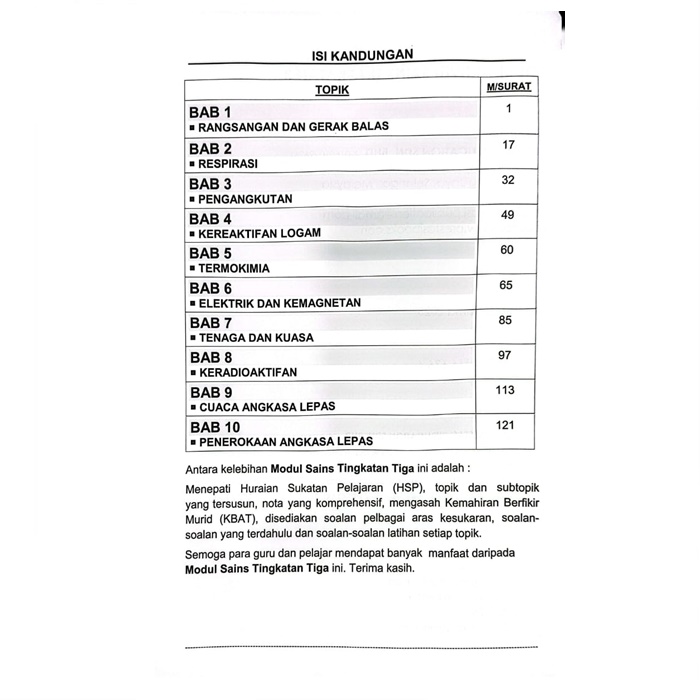 Modul Sains Tingkatan 3 KSSM – Edisi Lengkap & Padat