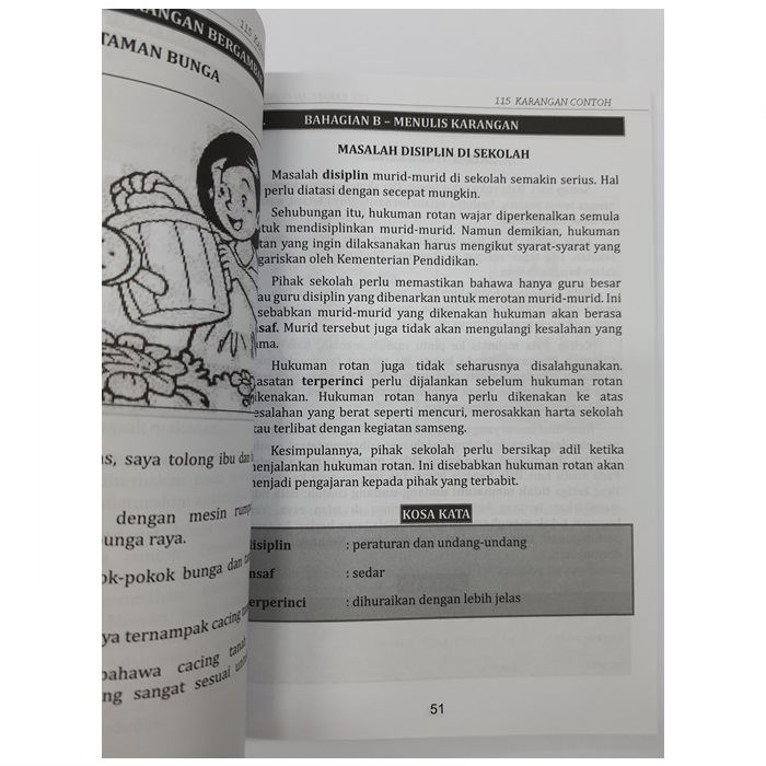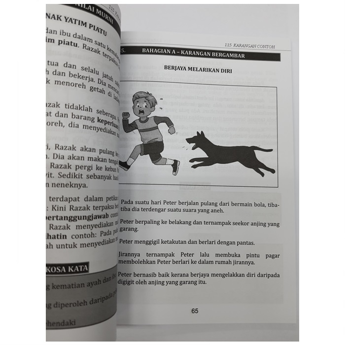 115 Dynamic Malaysian Bahasa Sample Essay for primary school consists of three parts. Part A: Illustrated Essays Part B: Writing Essays Part C: Pure Values This book contains interesting essay titles and uses easy-to-understand language. It also contains vocabulary for difficult words as well as interesting illustrations suitable for level 2 primary school.