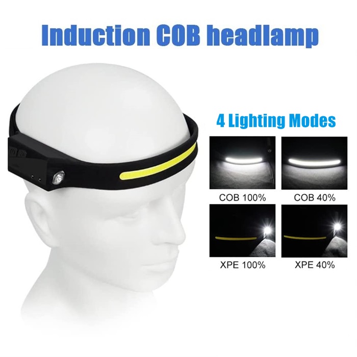 [Super bright effect & Multiple modes]: This head torch with COB and XPE 2 light source, The LED headlamp lights up your surroundings, unlike any traditional head torch. The wide area COB light 270° eliminates the need to move your head to illuminate the desired area, The led head torch flashlight has a maximum brightness of 600 lumens. and the head torch has 4 light modes of brightness: COB High/COB Low/XPE High/XPE Low