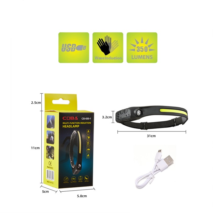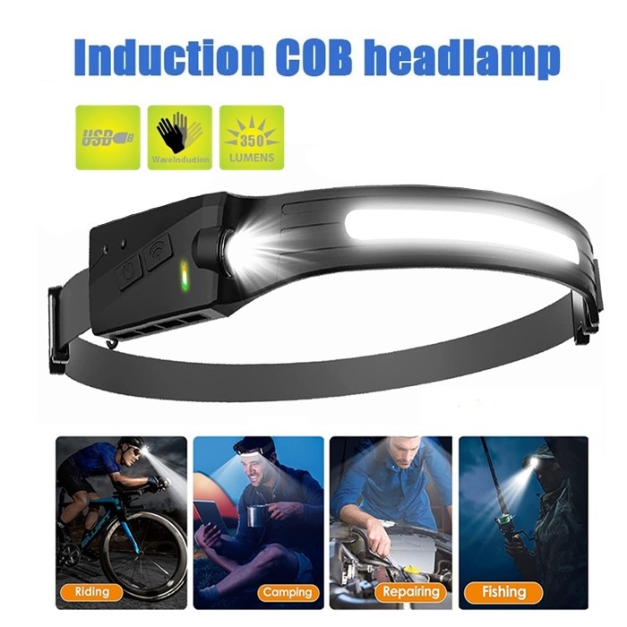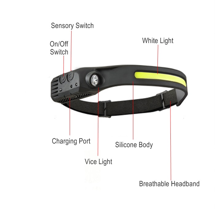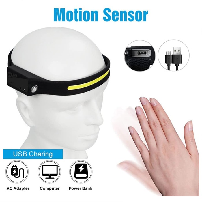 [Usb rechargeable headlamp & Motion sensor modes]: This head torch is charged using a USB charging cable and you can charge from multiple USB devices, When fully charged, the headlight can run for up to 8 hours under low floodlights and up to 3 hours under high spotlights. The head torch also has a unique sensor function design, just wave your hand in front of the head torch to turn it on/off.