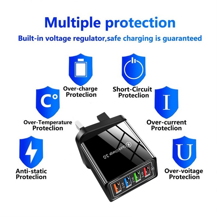 1. QUICK CHARGE 3.0: adapter wall charger can charge compatible devices up to 4 times faster than conventional charger ensures the fastest charging efficiency up to 80% in 35 minutes 4 times faster than conventional wall charger. Backward compatible with QC 1.0 and 2.0 Technology.
