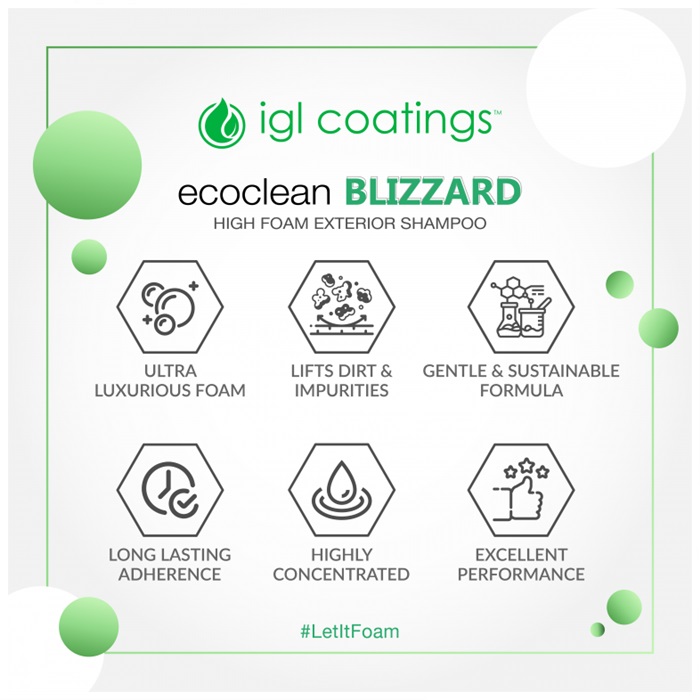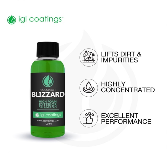 Ecoclean Blizzard ialah formula berbuih kaya ultra mewah dan direka khusus dan selamat untuk digunakan pada salutan. Mengutamakan bahan mentah yang diperoleh secara mampan, formula pekatnya membolehkan penggunaan produk yang kurang untuk liputan yang lebih luas. Buih Blizzard yang kaya, tebal, mewah dan tahan lama melekat pada kotoran dengan berkesan dan melarutkan kekotoran dengan menariknya perlahan-lahan dari permukaan untuk dicuci dengan mudah. Ia mengangkat kotoran dan melarutkan kekotoran dengan melekat pada permukaan dengan lembut. Menggunakan bahan mentah yang mampan, formula pekat membolehkan penggunaan yang lebih rendah dan liputan yang lebih tinggi, menjimatkan masa dan kos. Boleh digunakan sebagai pre-wash.
