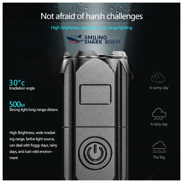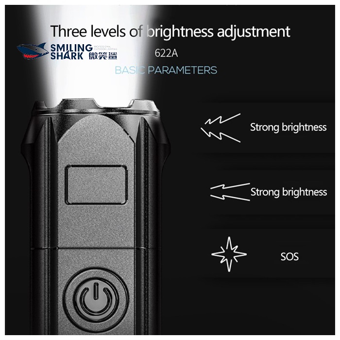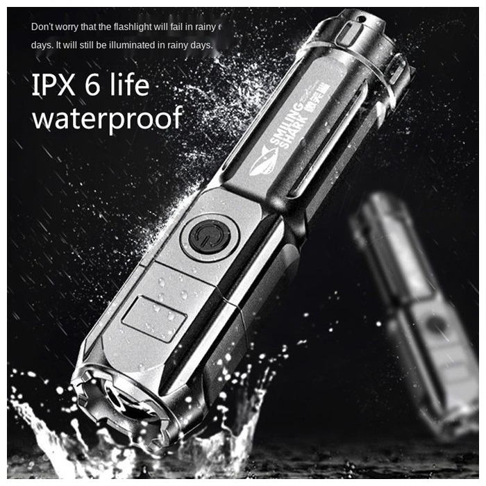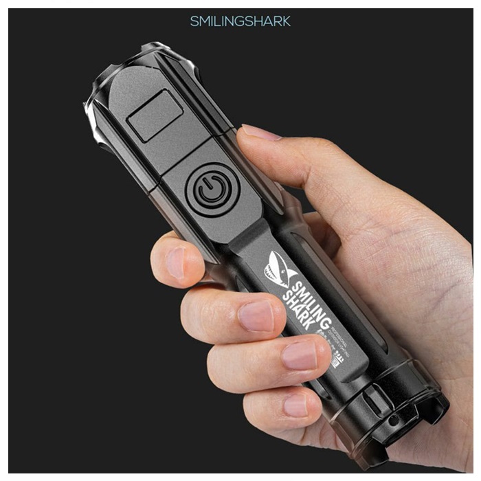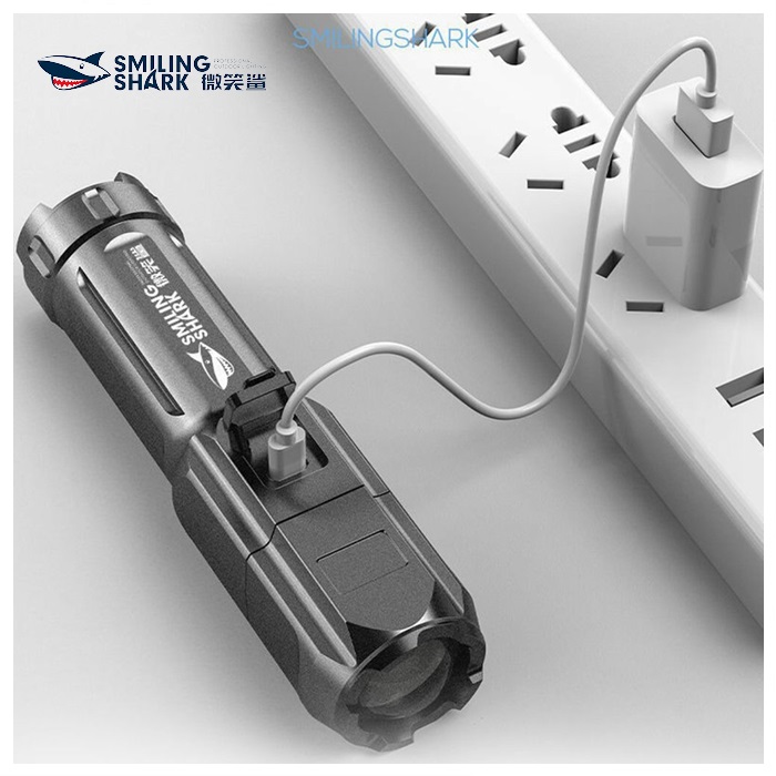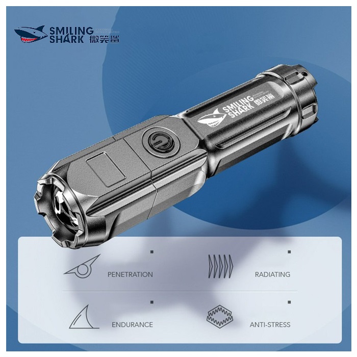 Original Smiling Shark Flashlight Strong Light Rechargeable Zoom Super Bright Xenon Special Forces Household Outdoor Portable Led Night Flashlight