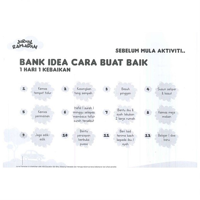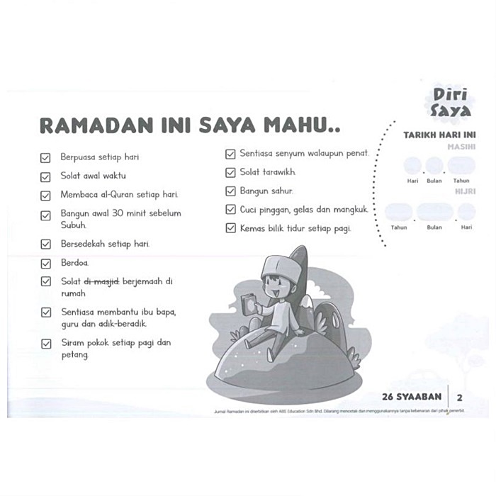 Edisi kemaskini ini lebih fokus melatih nilai-nilai kebaikan kepada diri sendiri, keluarga, shabat & guru termasuklah jiran tetangga.Edisi kemaskini ini lebih fokus melatih nilai-nilai kebaikan kepada diri sendiri, keluarga, sahabat & guru termasuklah jiran tetangga. Elemen literasi, bahasa, matematik, seni & kraf, kewangan serta memupuk nilai pintar sosial ditampilkan di dalam Jurnal Ramadan kali ini, selain daripada aktiviti-aktiviti berkisar Bulan Ramadan.
