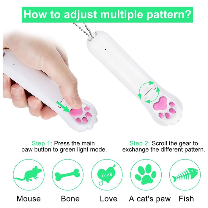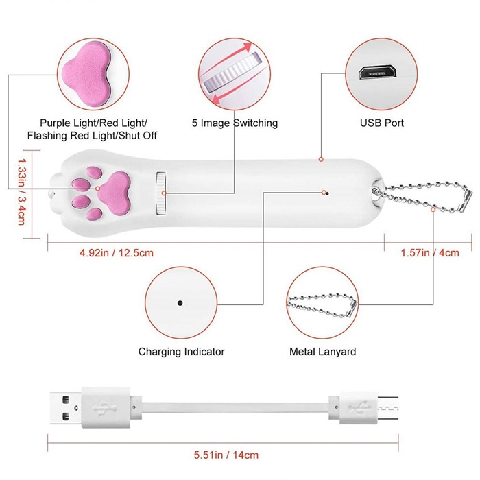 * USB Boleh dicas semula. Tidak Perlu bateri!!! ia boleh dicas dalam Pengecas, Kuasa Mudah Alih, Pengecas Kereta USB, Komputer dsb. sebarang peranti pengecasan dengan antara muka USB. Lebih kurang 1.5 jam boleh dicas penuh, untuk mengusik kucing, ia boleh bertahan selama seminggu! Ia sangat mudah untuk bersenam dengan haiwan kesayangan anda!