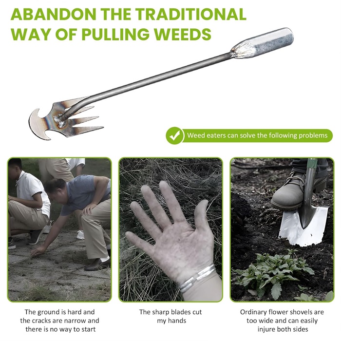 2.Easy to Use – Simply insert the tines into the soil near the weed root and pull upward. Perfect for corners, grooves, and narrow areas while loosening the soil at the same time.