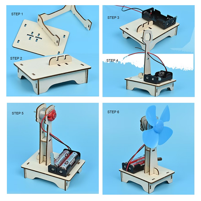 Kit STEM Kipas Elektrik DIY – Mainan Eksperimen Sains Kayu Pendidikan