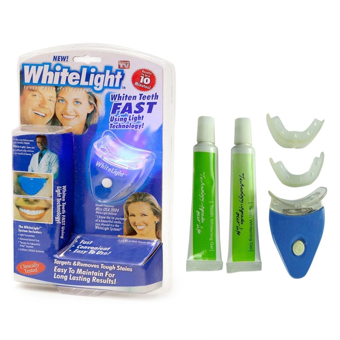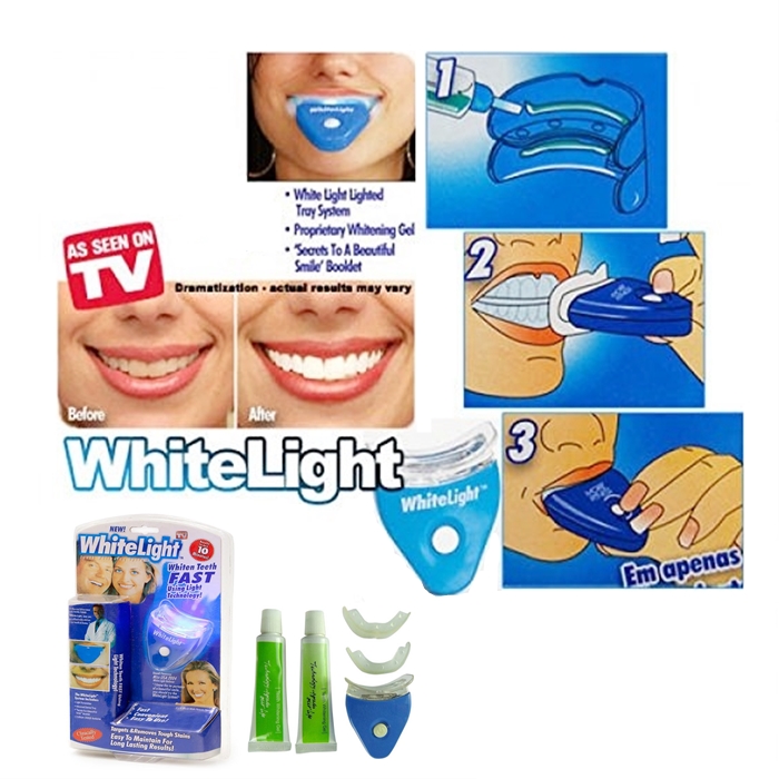 Gabungan gel dan instrumen cahaya yang langsung mengikis warna kekuningan gigi anda. Ingatlah: JANGAN PUT EMAIL, jadi sangat selamat untuk digunakan. Sapukan gel ke gigi anda, kemudian gunakan alat ini, 10 minit sehari. BOLEH MELAKUKAN KESALAHAN YANG KUNJUNGI KUNJUNGI KEPADA SEBARANG KEGUNAAN.