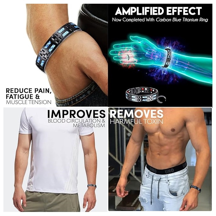 4) Unique Blue Carbon Fiber Design: 4 element magnetic bracelet with blue carbon fiber, make it a perfect choice for healthy & stylish wear. The magnetic bracelet for men can be matched with variety of dressing styles for office, business occasions, outdoor sports and other daily scenes.