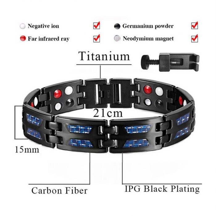 Gelang Magnetik Terapeutik untuk Lelaki Arthritis Relief Lymph Detox Gentian Karbon Biru Unik Gelang Magnet Keluli Titanium Penyembuhan Terowong Karpal Hitam dengan Magnet Terapi 4 Elemen