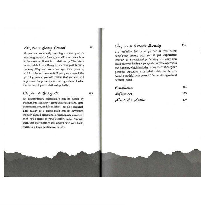 You could find it easy to blame your partner or past events for your feelings of insecurity in a relationship. If you have had your trust betrayed in the past or if your upbringing encouraged doubt and suspicion, it may be difficult to learn how to be confident in a relationship. But if you want to grow in self-assurance and confidence, you must be willing to take responsibility for your own actions. It's up to you to decide how to interpret your events. You are in charge of your feelings. Thus, you can use the 9 steps on how to heal a relationship through confidence provided in the book to concentrate on becoming more assured and confident in a relationship.