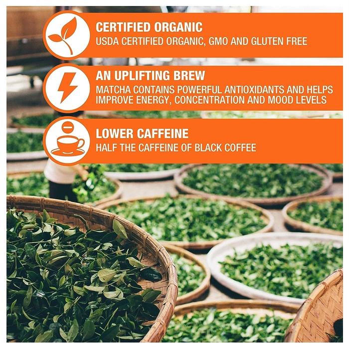 *MATCHA GREEN TEA DELIVERS A POTENT BREW: Loaded with antioxidants, matcha tea is regarded as a detoxifying and metabolism boosting tea made from green tea leaves specially processed and ground into a powder more concentrated than regular green tea.
