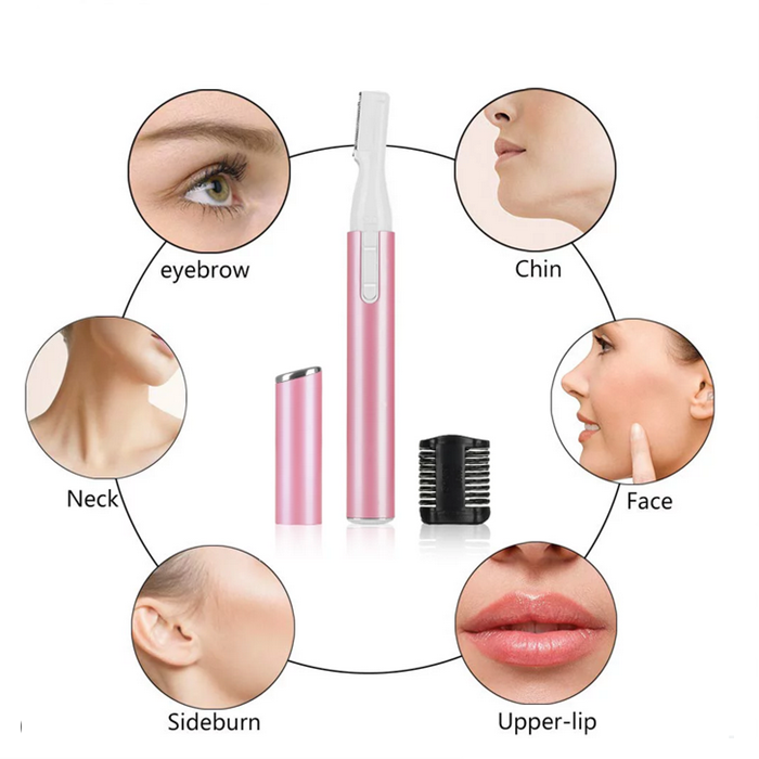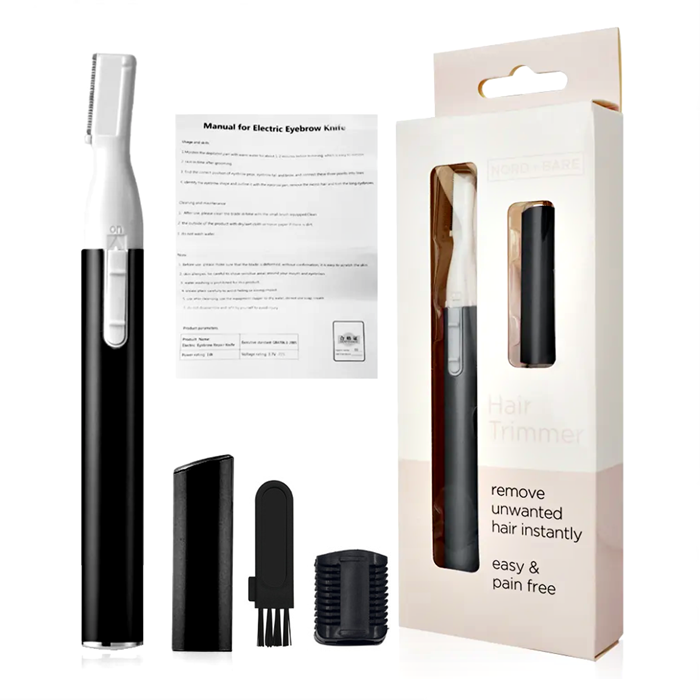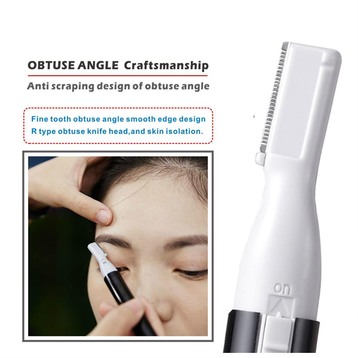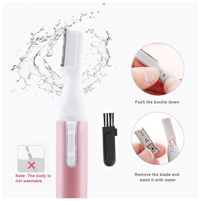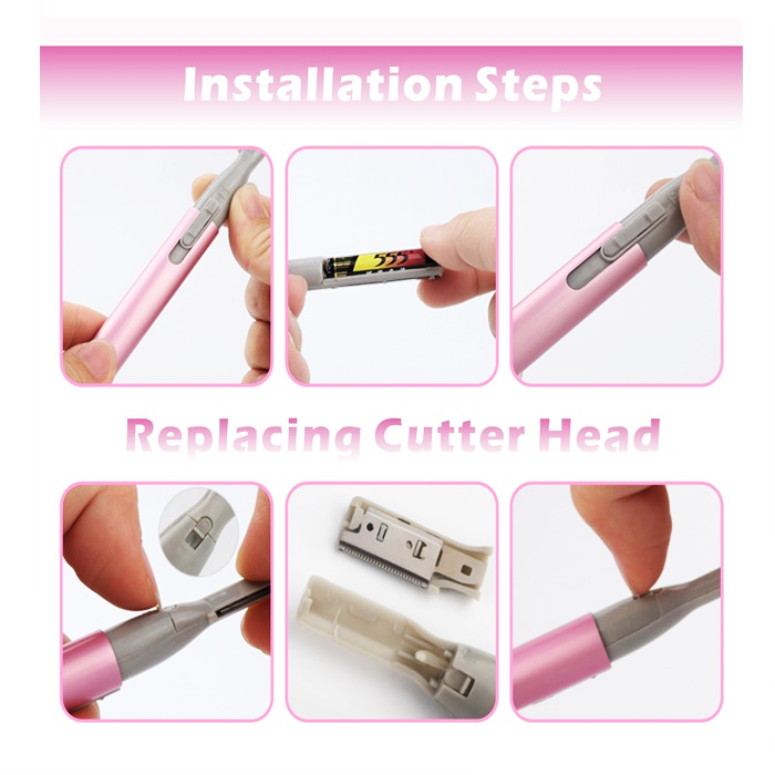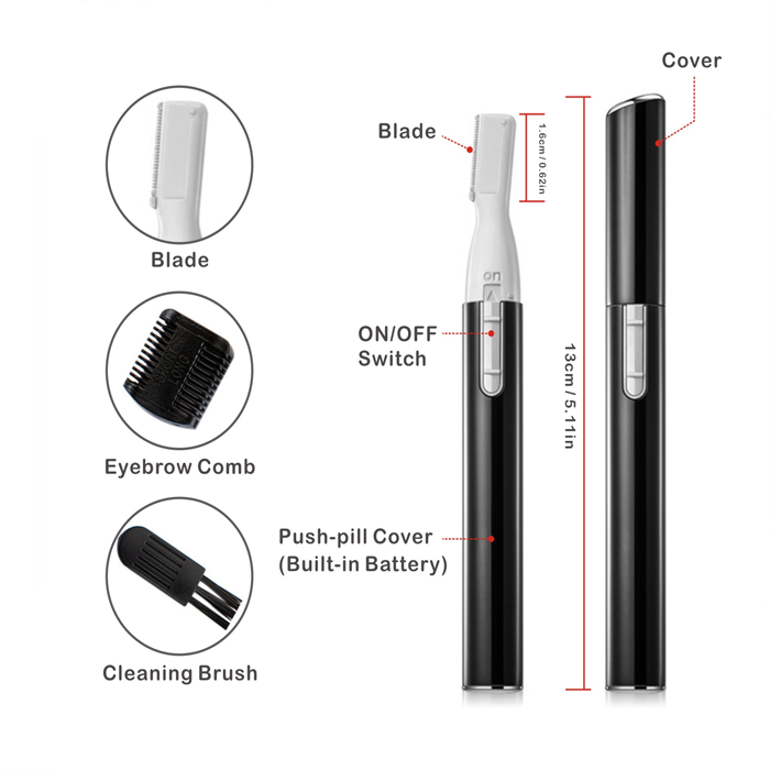 刀片是安全的,不会伤害您的皮肤或婴儿的皮肤。 可用于修剪眉毛、胡须或婴儿的细发。 用于修饰目的。 使用 AAA 电池,有黑色或粉红色可供选择。